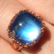 刚刚镶嵌好的蓝色小冰块。 以前未关注过月光,无意中发现是自己的生辰石,于是在珠宝展上买了一颗。晶体不是极干净的,胜在个头还行,8卡多。前两天看到一个吧友在纠结戒指的款式,正巧是我做的款。昨天刚拿到,珠光宝气啊。封黑底镶的,请各位吧友品评。 自然光:背阴处、强光下