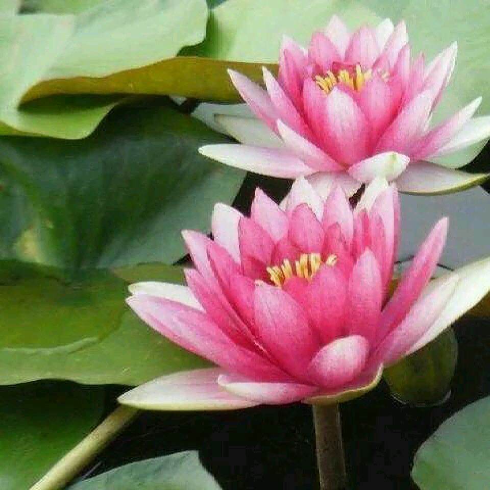 闲庭信步至荷塘 并蒂莲花散芳香 碧叶托珠遮锦鲤 朝阳放彩戏鸳鸯