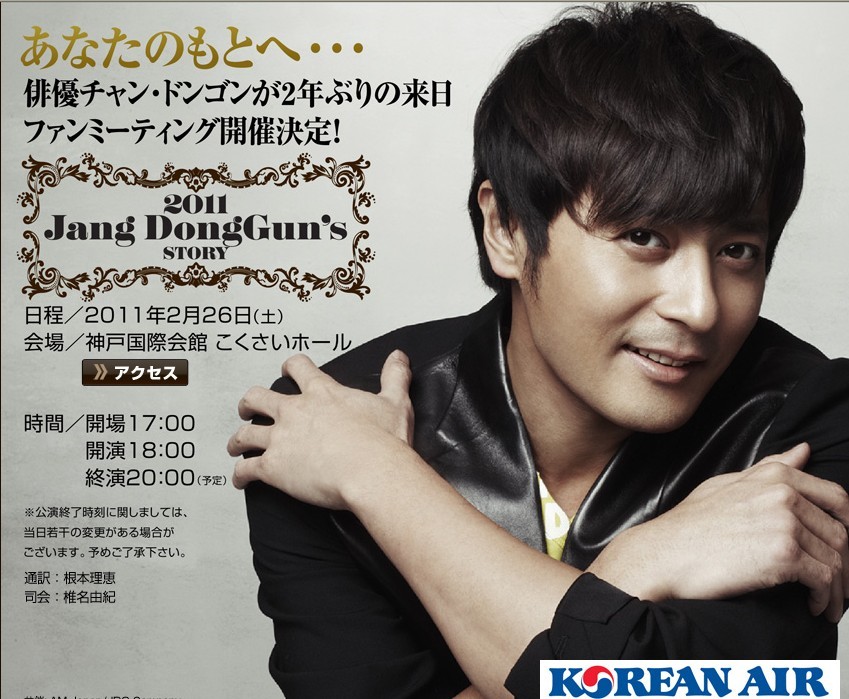장동건은 25일 일본으로 출국, 26일 일본 고베 국제회관에서 팬미팅을 연다. 이번 팬미팅은 매년 장동건 생일(3월7일)에 즈음해 열리는 행사. 장동건이 일본에서 팬미팅을 여는 것은 2009년 11월 한류4천왕 콘서트 이후 처음이다.