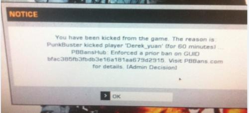 1.当你被BAN后,进入服务器时被T出会提示.提示内容是"PBBansHub:Enforced a prior BAN ON GUID"GUID后的字码就是你的GUID