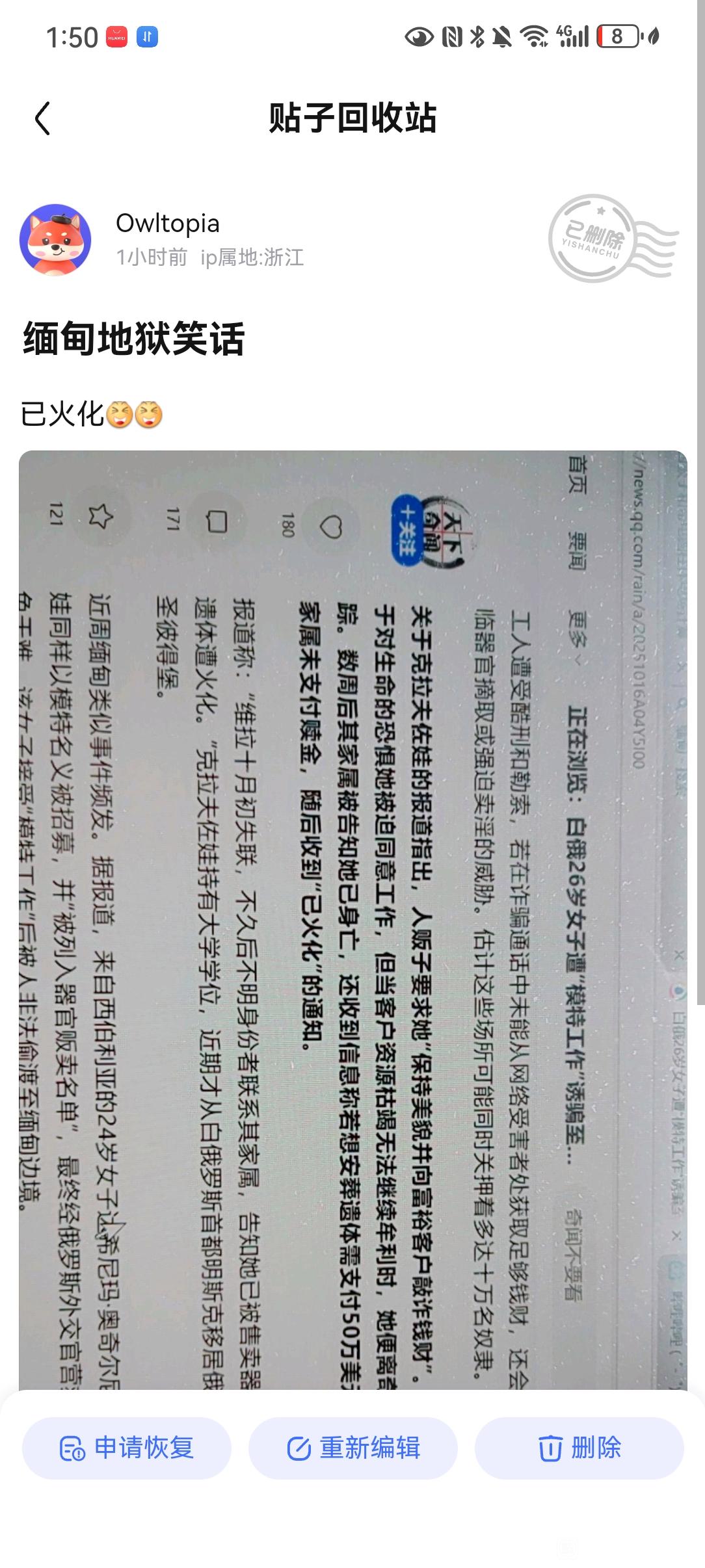 发的笑话被删了