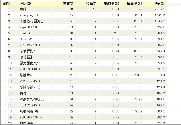 爪机党不用看后面的那些精品率啊 主题率 只需要看名次就行咯嘛 具体的还是电脑上看