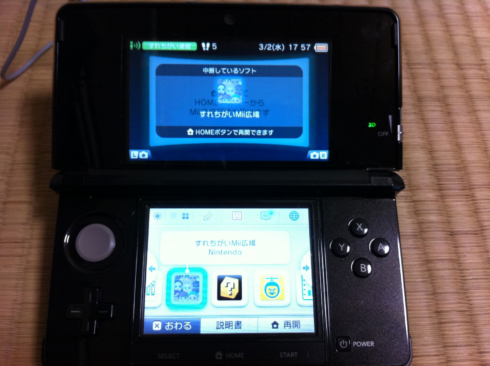 问一下楼主,你的3ds在游戏中按home键有反应吗?