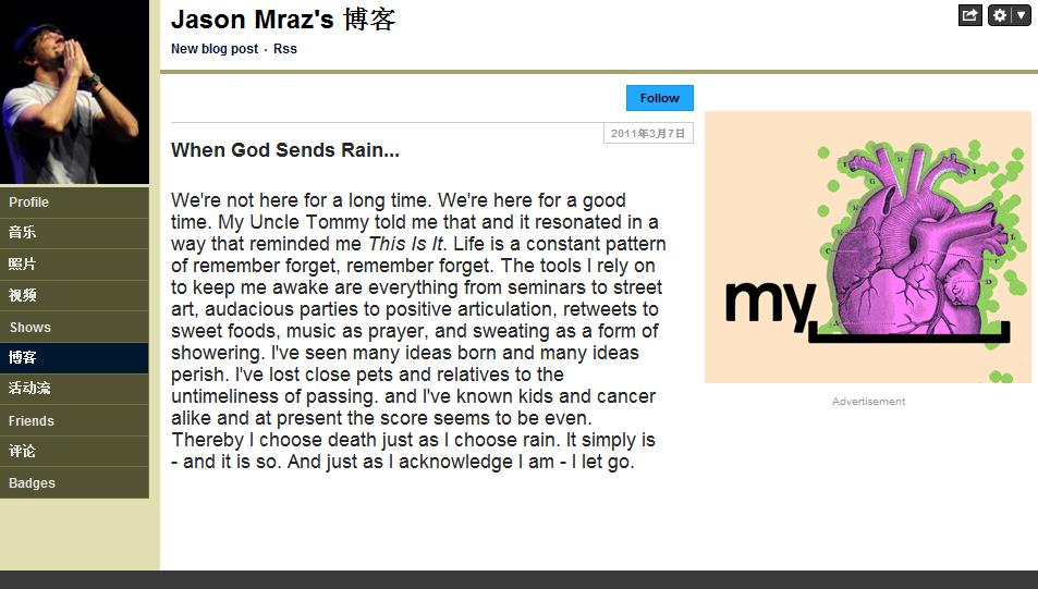 【博客】Jason Mraz's myspace