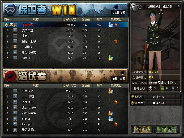 九楼.咱不是一个系统的.不能比啊~我打爆破从来都是后三的~.~