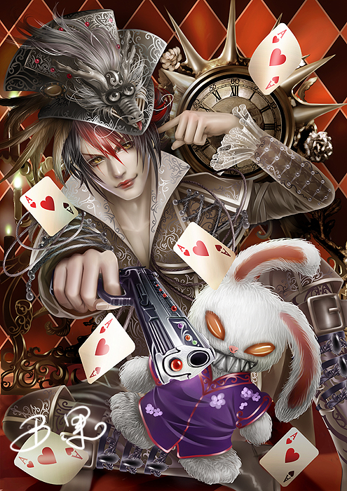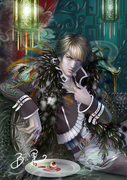 之后就是这张肩膀扛着蜥蜴的了~这张我最喜欢~带了一些国色元素然后可以让我很花哨滴画了一堆也没去掉啥~~就是最后蓝眼改了黑眼而已~