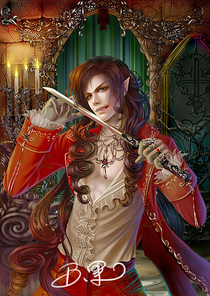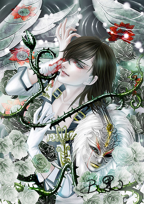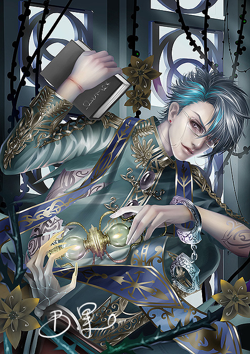骑士诵是第一次画的月末的封面,那个时候很兴奋,很开心,很花痴……而且那个时候画的头发感觉自己很喜欢,但是现在画法改变了……怀念了……哪天再照以前的画法画一些来怀旧~
