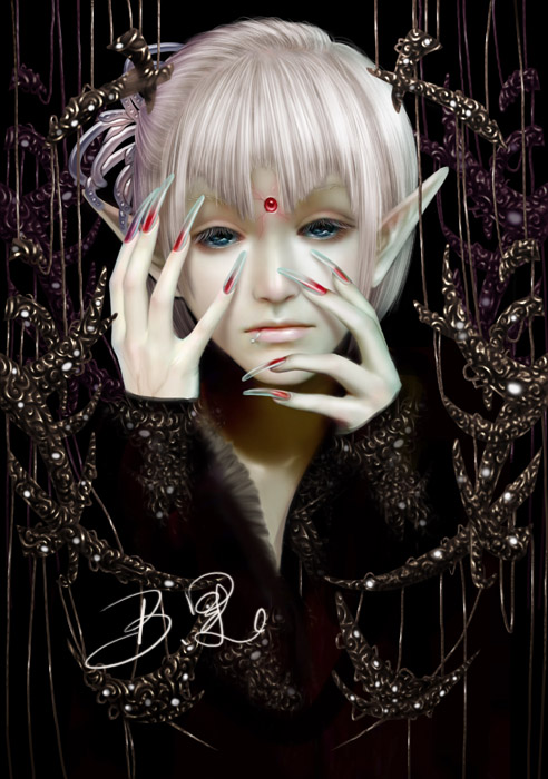 这张是想有些改变,所以脸的画法跟以前不同,最后喜欢和不喜欢滴一半一半吧……于是开始找不到方向……