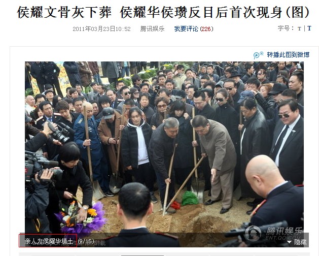 上面写亲人为侯耀华填土