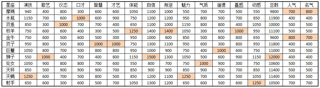 【星座基础数值】