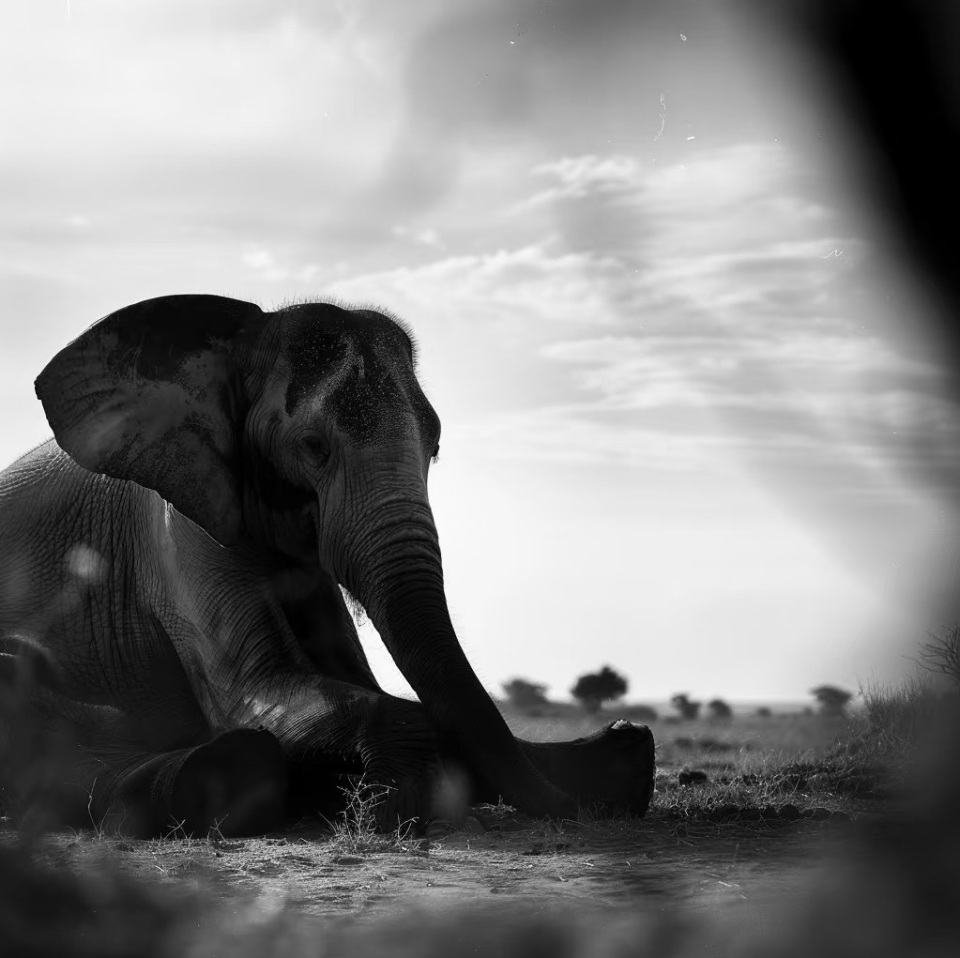 席地而坐的大象