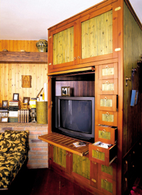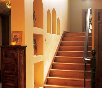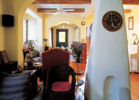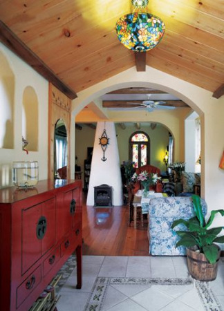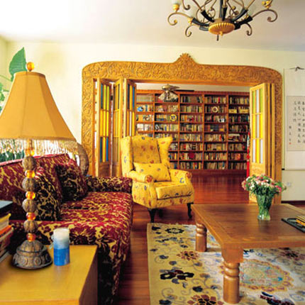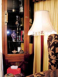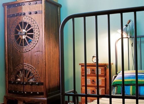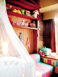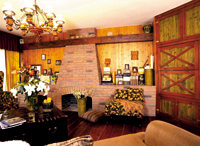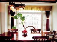 我们跟随这个幸福爸爸进了屋。屋内旧旧的木地板、宽大的布沙发、彩色的玻璃、欧式的壁炉,有一种浓郁的异域风情。如果不是佟瑞欣提起,谁都猜不出这套房已经装好3年了。佟瑞欣笑着说,就是因为装修风格很老,所以不会过时。原木的装修材料不易磨损,再加上细心的打理,看上去房子果然仍是簇新的。