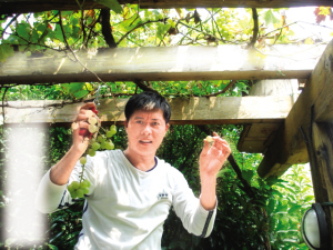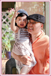 佟瑞欣见我们来了,并没有急着领进屋,而是先带我们参观院子。刚才我们已经看到了前院的美丽景象,可没想到,绕过房子,还有一个不小的后院。后院被开辟成了果园和菜园,种了桃树和蔬菜,用佟瑞欣的话说,这是他的“农家小院”。小院弄好的时间不长,可菜已经长得很好。佟瑞欣说之所以开辟这个小菜园,就是想为女儿弄点没污染的蔬菜吃。这个爸爸的爱女之心真是让人感动。正说着,佟瑞欣的女儿小雨出来了,小家伙像小精灵一样可爱,看见女儿的佟瑞欣满脸幸福,一口一个“宝宝”地叫着。