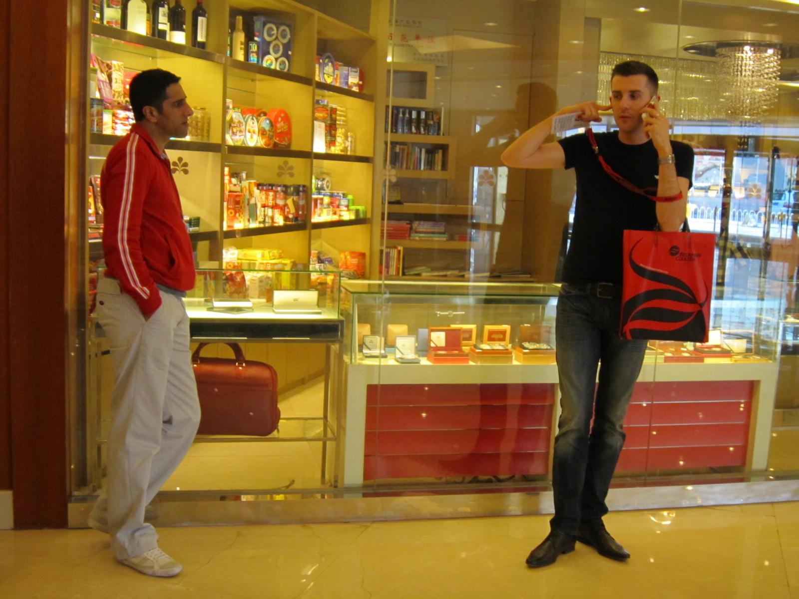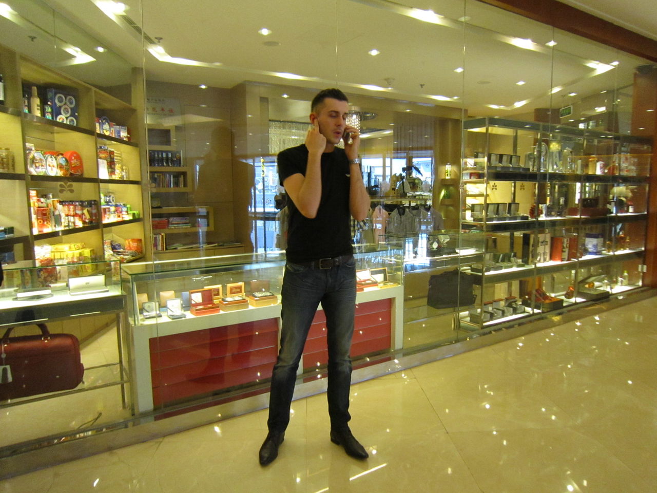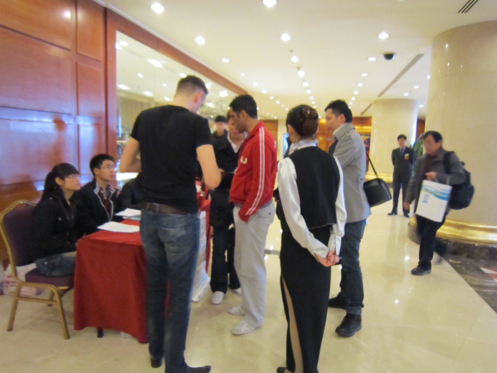 再后来他们一行人一起出来,一直在接待处逗留,小塞一直再通电话,好像很忙碌的样子,抽空跟他合了张影,在旁边偷拍了几张全身照。之后他们就上楼没再下来。