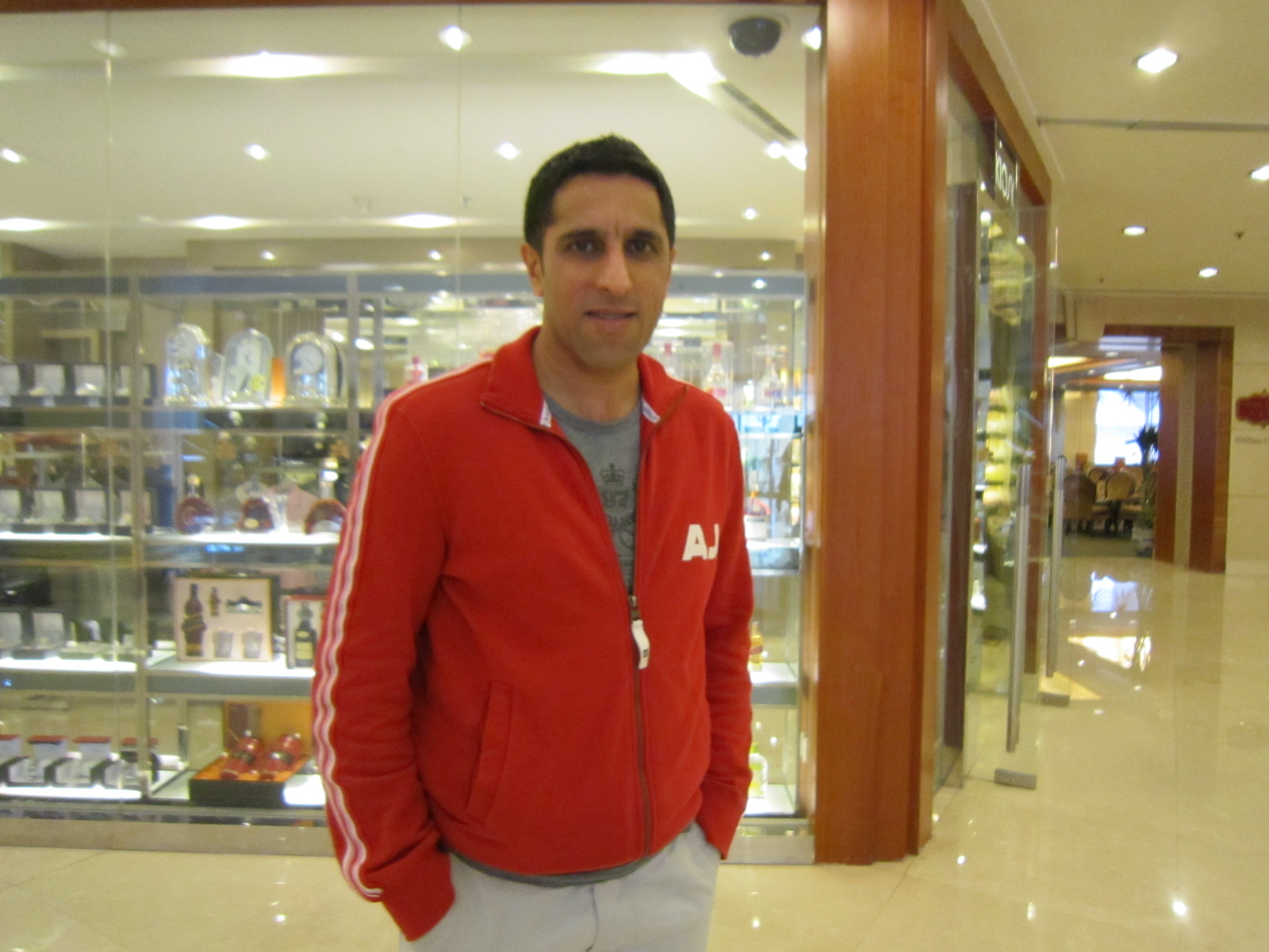 但大概5点多钟的时候不知道他是从哪突然冒出来在大厅里晃了一下就又消失了,穿着夹克戴着墨镜,若不是认出了他的身材与鞋子,都不敢确认。