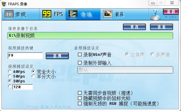 你Fraps里设置为全屏录制没?它可以选择“屏幕大小”和“一半大小”