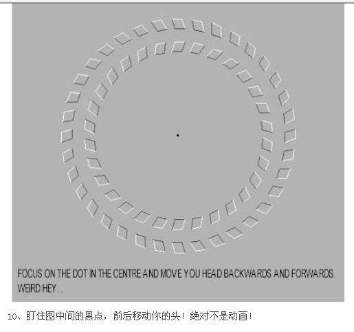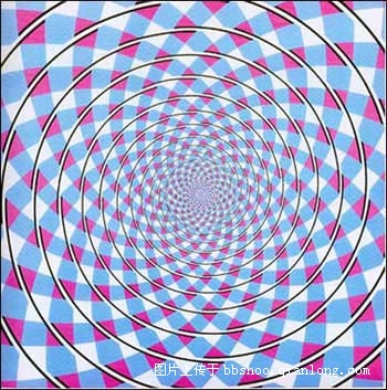 “弗雷泽螺旋”是最有影响的幻觉图形之一。你所看到的好像是个螺旋,但其实它是一系列完好的同心圆!这幅图形如此巧妙,以至于会促使你的手指沿着错误的方向追寻它的轨迹。