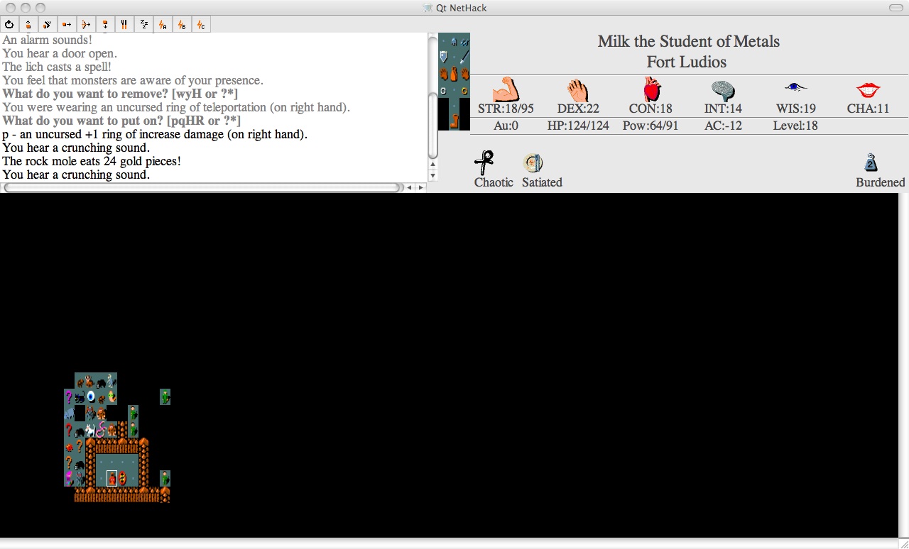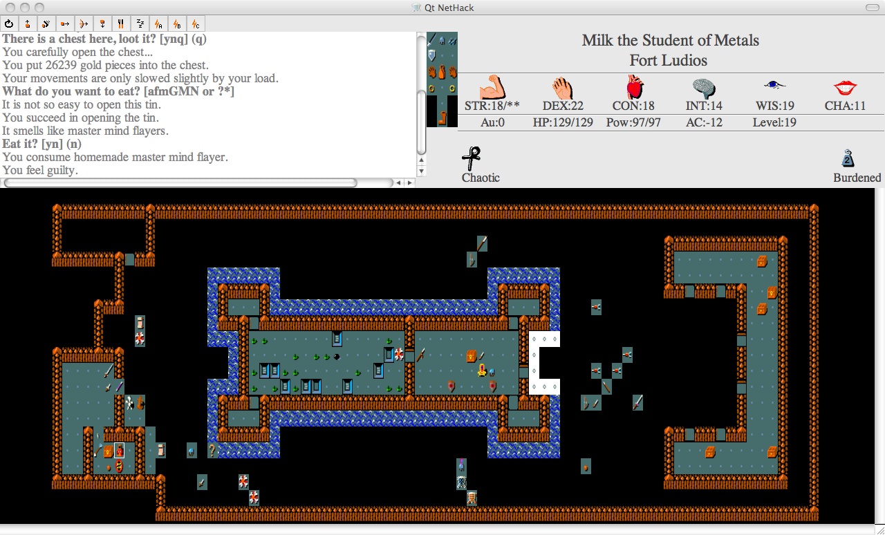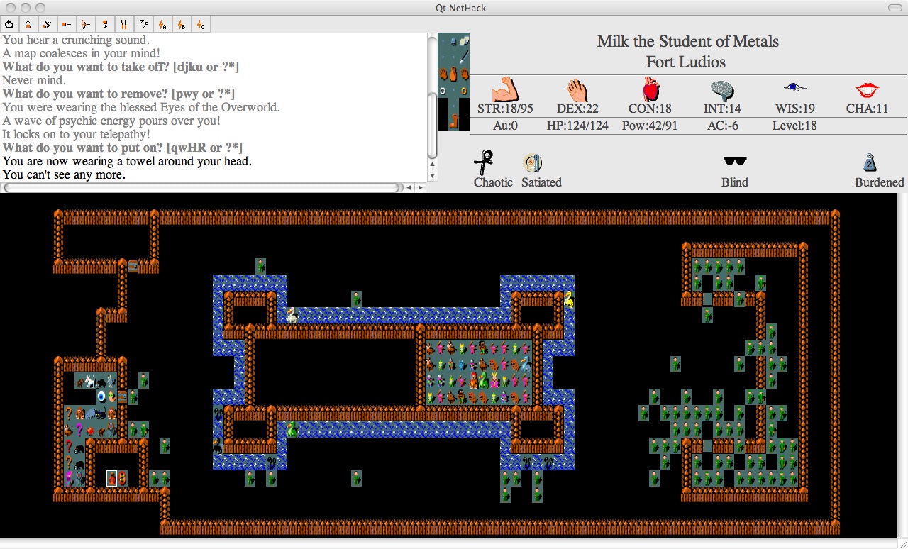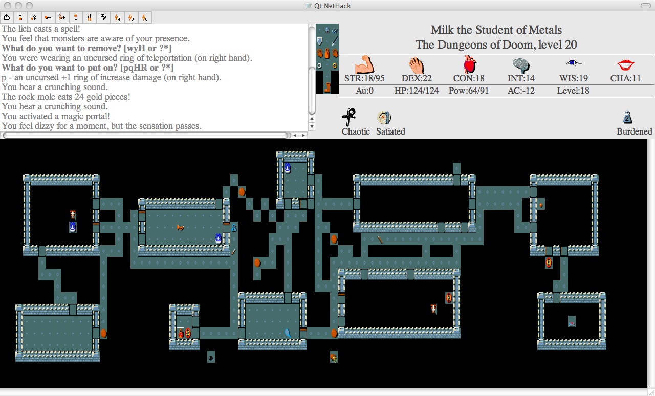 再提一点,如果身上带有Wand of Polymorph的话,可以考虑对着门口那堆非常非常多的装甲放一发,很容易刷出shirt来,这样可能会节省一个wish