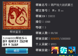 马上四级帮派 收人!名额两个,30级+!常玩就行!!ID 33833