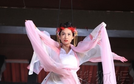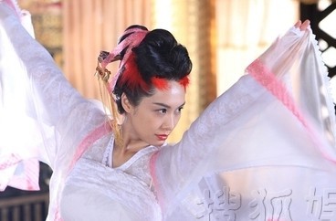 朱茵穿那身跳舞的衣服跟睡衣似的白衣服粉红飘带,头上还来一圈红鸡毛
