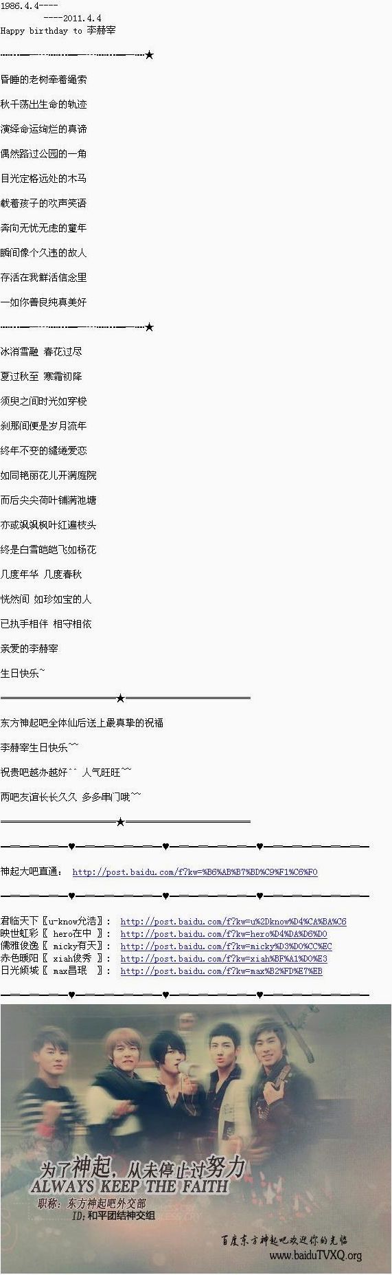 HчиK°Smǐlё「110402祝福」东方神起吧全体仙后送来生日祝福^^