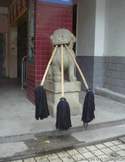 某机关单位门口的狮子表示自从换了个扫地的阿姨,我从来就没这么威