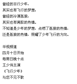 四月十日起, 华视强势上档, 每星期日 晚 22:00 《飞行少年》