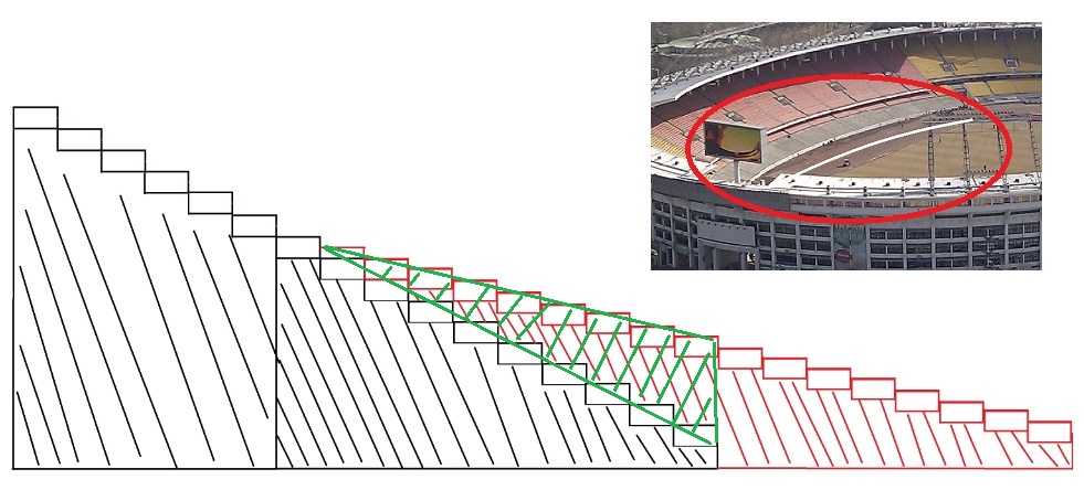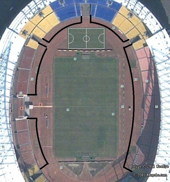 左边球门后的座椅是移动座椅 开演唱会时舞台的位置