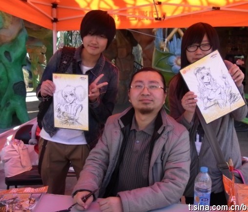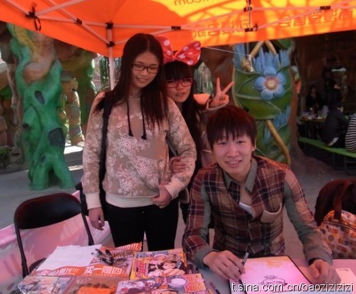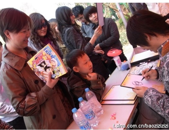 传说中的极乐鸟超级可爱~~哈哈,现场又活泼又给力的给来求签绘的读者们画起了人物Q版~~~他也是一整天没休息过~~辛苦啦