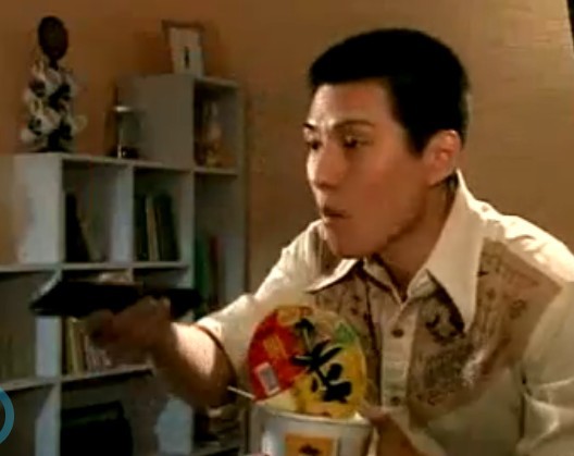 某位仁兄在吃方便面的时候打开电视