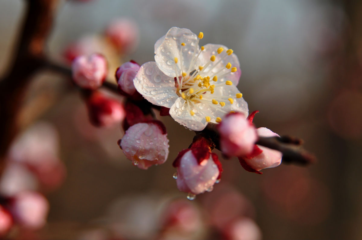 看着这树林中,还有路边这静静绽放的桃花,心中竟倏地生起一种莫名的感动,一种只可意会不可言传的情愫在心中悄然荡漾,有泪滑过面颊,使我陷入一种思绪的飞扬中:她有着“驿外断桥边”的寂寥,却没有“已是黄昏独自愁”的低落;她有着“小桥流水人家”的怡然,却没有“枯藤老树昏鸦”的苍凉;她有着下里巴人的朴实,却没有阳春白雪的骄气。暮暮朝朝中,她没有“冯唐易老,李广难封”的感喟,没有“封狼居胥”的傲然,没有“名落孙三”的灰心丧气,没有斩将夺魁的壮志豪情,也没有地处角落的自怨自艾、芬芳炫丽的高调张扬。静默绽放中,她有的只是世外桃源的宁静和平和、佛教的禅定和幽邃,有的只是“山色空蒙雨亦奇”的美丽和无华,有的只是“不以物喜,不以已悲”的淡定与超然、“润物细无声”的静默和从容……