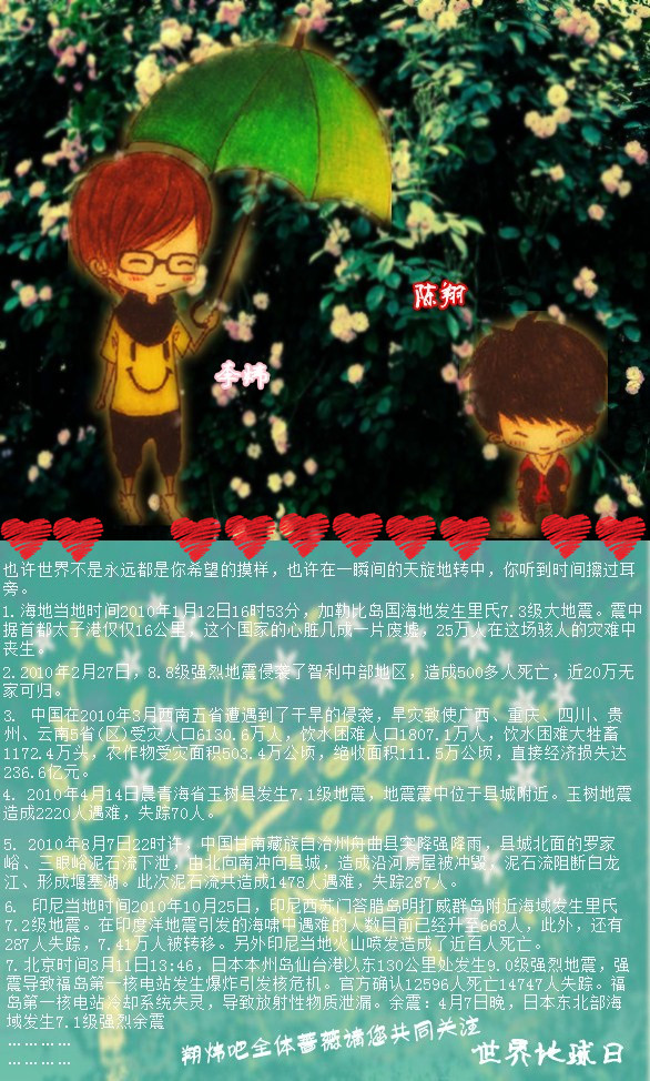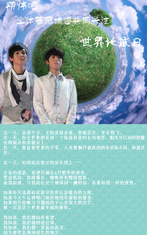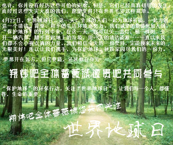 ☆★外交★☆ 『11.04.23』翔炜吧全体蔷薇邀您共同关注世界地球日