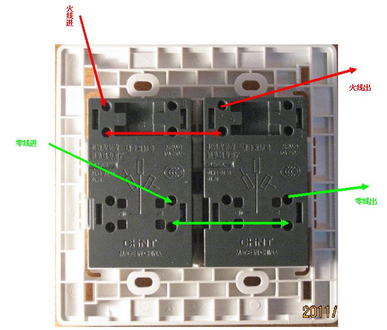 家中原来的插座坏了,新买了一个,上面的开关想控制下面的插座,有一路进线,还有一路线要从这个插座中引出。该怎样跳线?