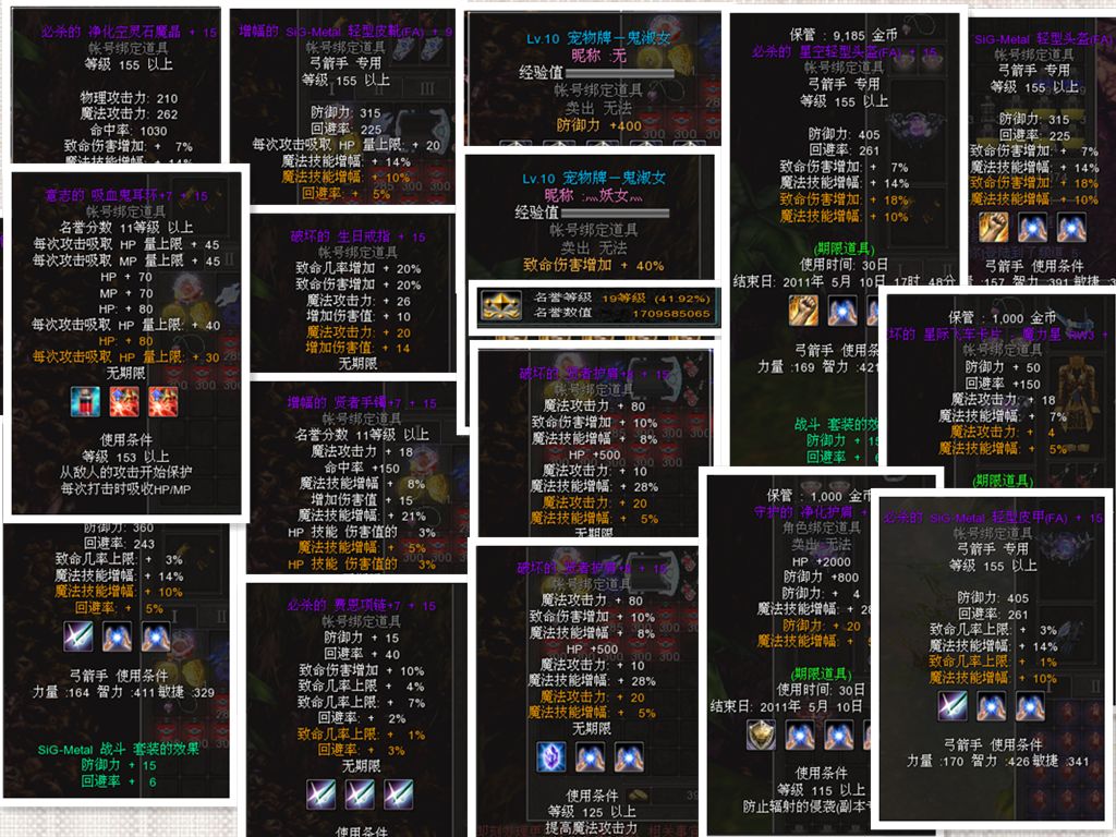 500元出售此号 19级名誉 24Z25S+15净化晶一对 40S400F鬼淑女各一只 装备如图 诚心需要的联系qq474909120 另赠送钻石会员ID一个 游戏币30E+泡点3000+