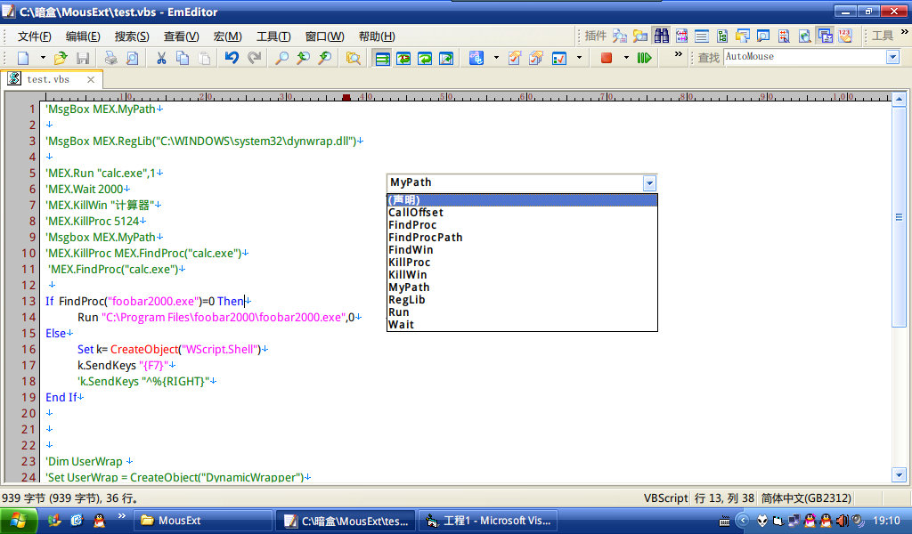 MousExt(原AutoMouse)脚本引擎的常用接口初步完成