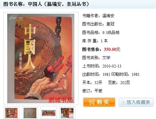 近日为了买温先生的一本《天火》,在网上搜络出大量稀奇古怪、五花八门的书,发觉有些意思,给大家展览一下。