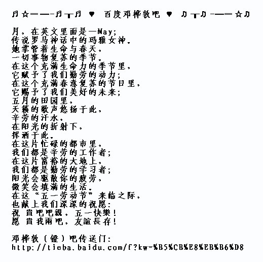 【恋恋苗情】「110428外交」邓桦敦吧全体镫弦送上五一祝福!