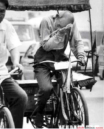 他曾在夏天路面温度高达50摄氏度的炙烤下,从三轮车上昏倒过去;他曾在冬天大雪满地的路途中,摔到沟里;他曾由于过度疲劳,蹬在车上睡着了;他曾多次在感冒发高烧到39摄氏度的情况下,一边吞着退烧药片,一边蹬车,虚脱的汗水湿透了棉袄;更有不为人知的是,由于年事已高,冬天里他常常憋不住小便,棉裤总是湿漉漉的,他就垫上几块布照样蹬着车四处跑。