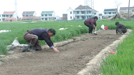 丰利镇积极引导农民适时搞好春耕生产,提高科学种田水平。图为包场农民正在播种棉花良种。