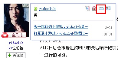 或点击Yidaclub ID的字的部分 会跳到i主页 在页面右侧也会有小信封的图标