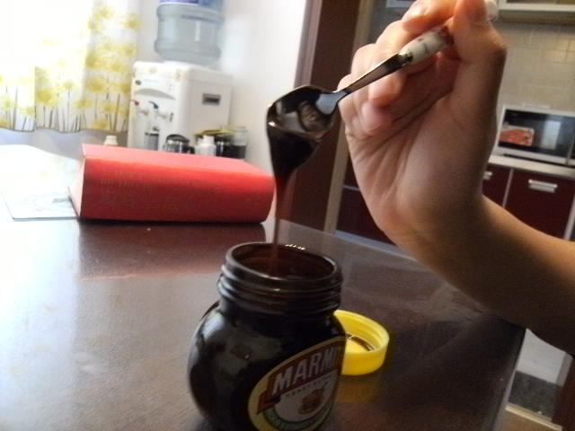朋友有心地今年送了我一瓶Marmite,隔了一个星期都没打开,想选个春光明媚的日子~(我很夸张= =)今天才打开。
