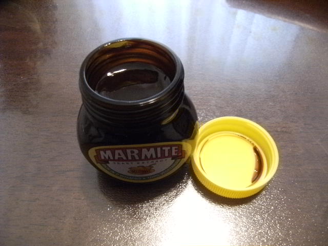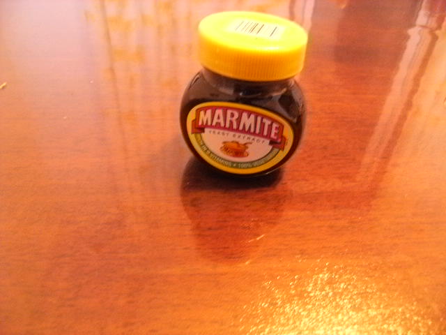 呃呃……这是传说中Alan最喜欢吃的东西之一Marmite开胃酱(另一个不是甜甜圈嘛~),我记得好像哪里说到Alan是素食主义者吧,这个酱是多数素食主义者的最爱。