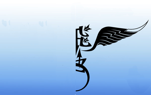 请帮我把这图中间带翅膀的2字抠出来,放大(最好不要影响清晰度),并把2字从中间分开,就是把2部分做成2张图片!