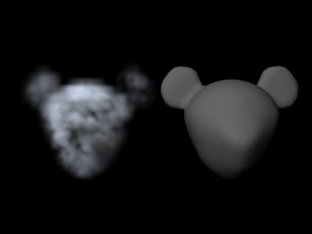 我们新建一个3D流体,将精度调节至20x20x20,确保我们可爱的小熊在流体容器内部