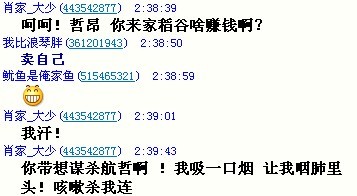 肖家_大少(443542877)   2:39:43 你带想谋杀航哲啊 !我吸一口烟 让我咽肺里头!咳嗽杀我连