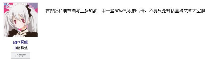 于是在此时提意见,妹子们会欣然接受,这种方法既促进自己与妹子们的友谊(……),又可以让苏文的质量渐渐提高
