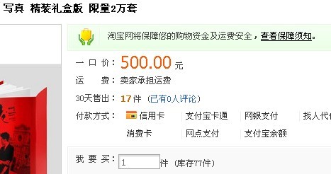 我的那个天~ 刚去淘宝查了一下宝的写真,现在要299!!!而且还只有一家