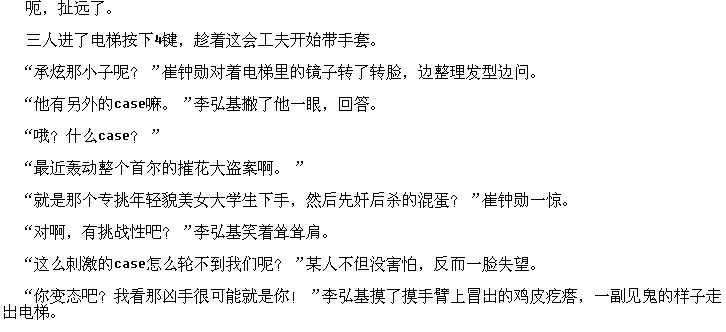 “好吧,这个问题以后再说,我们还是先谈谈你发现尸体时的情况?”崔钟勋仍旧是淡淡的微笑着。