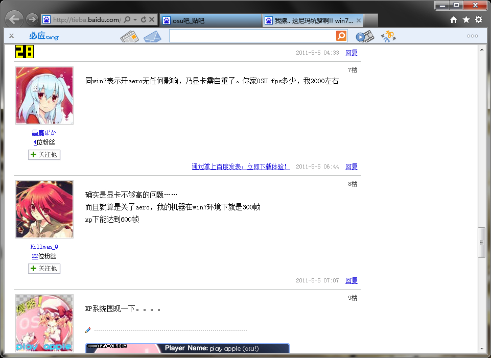 但是发现win7系统窗口化玩OSU的时候会出现lag的现象