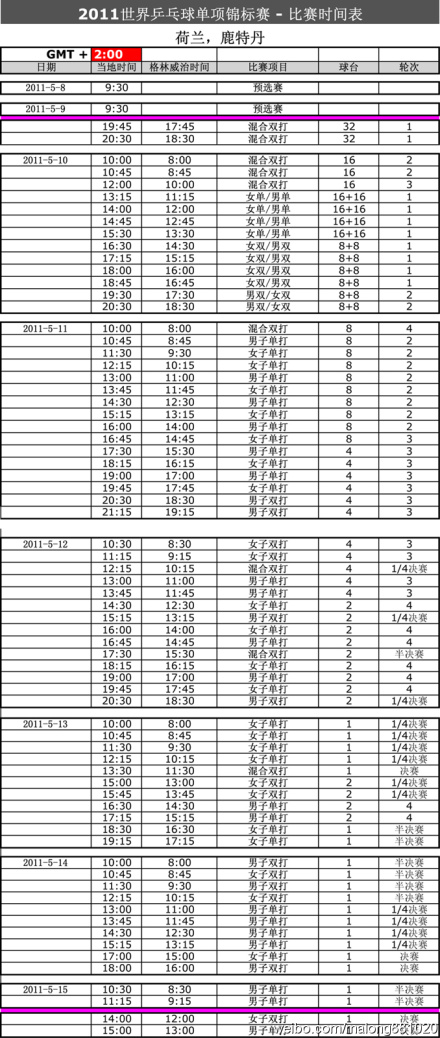 【皓月当空】【公告】鹿特丹比赛时间表。